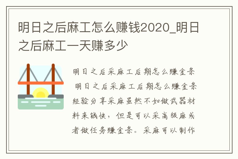 明日之后麻工怎么賺錢2020_明日之后麻工一天賺多少