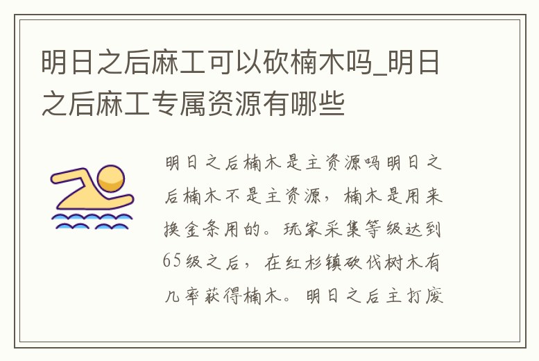 明日之后麻工可以砍楠木嗎_明日之后麻工專屬資源有哪些