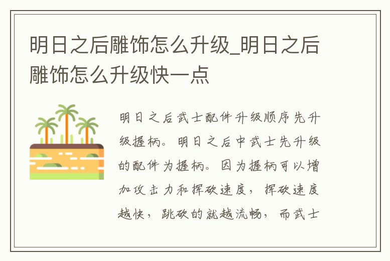 明日之后非武士沒有必要升級握雕飾 如果是武士主武器配件肯定是可以升主握把,副掛穗或者雕飾,因為在第一季主流的配件升級中,都是以攻擊屬性為主,攻擊因為第一季的暴擊。