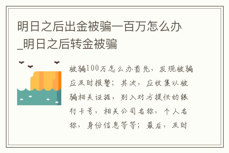 明日之后出金被騙一百萬怎么辦_明日之后轉(zhuǎn)金被騙