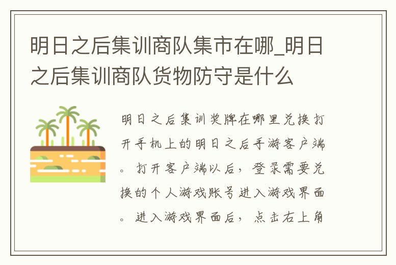 - 明日之后集訓(xùn)商隊(duì)集市在哪_明日之后集訓(xùn)商隊(duì)貨物防守是什么