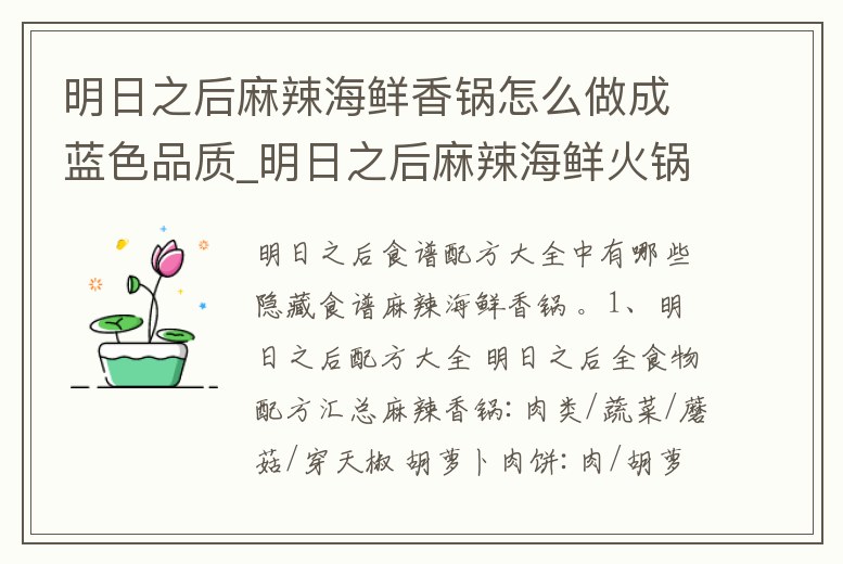 明日之后麻辣海鮮香鍋怎么做成藍色品質_明日之后麻辣海鮮火鍋做法