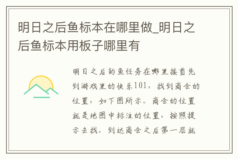 明日之后魚標本在哪里做_明日之后魚標本用板子哪里有