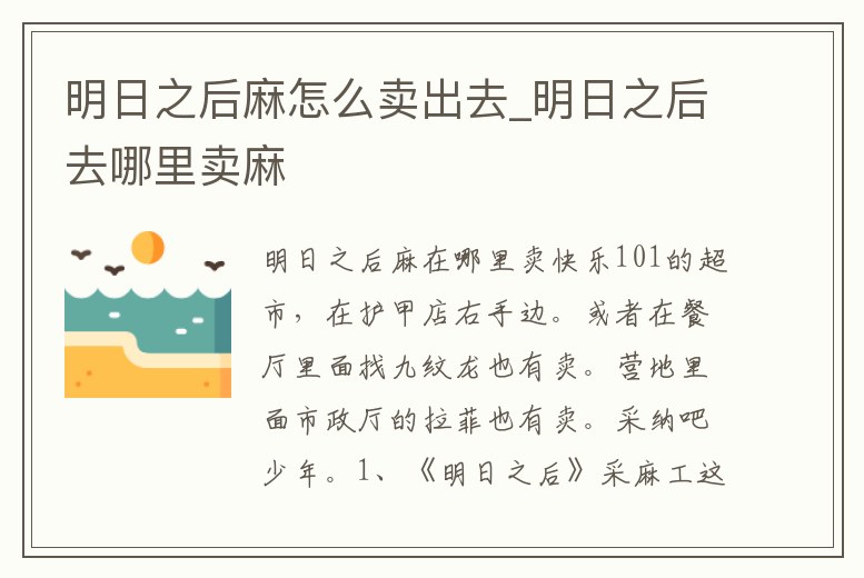 明日之后麻怎么賣出去_明日之后去哪里賣麻