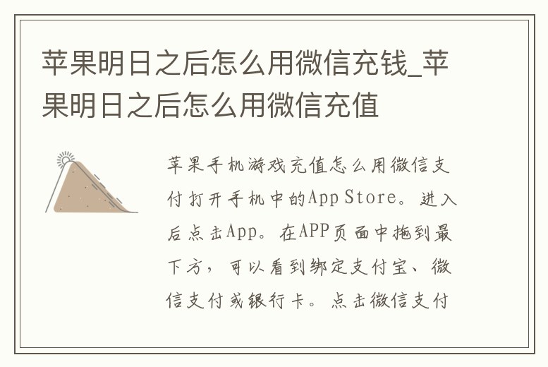 蘋果明日之后怎么用微信充錢_蘋果明日之后怎么用微信充值