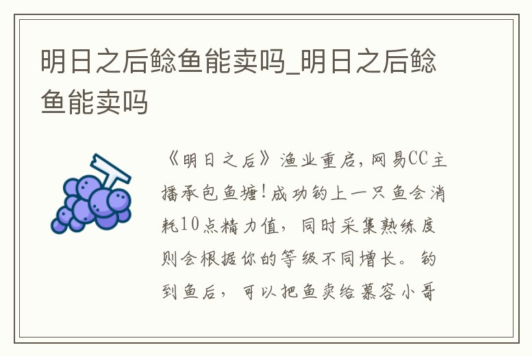 明日之后鯰魚能賣嗎_明日之后鯰魚能賣嗎