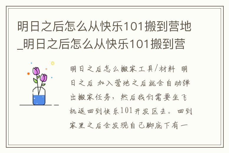 - 明日之后怎么從快樂(lè)101搬到營(yíng)地_明日之后怎么從快樂(lè)101搬到營(yíng)地的