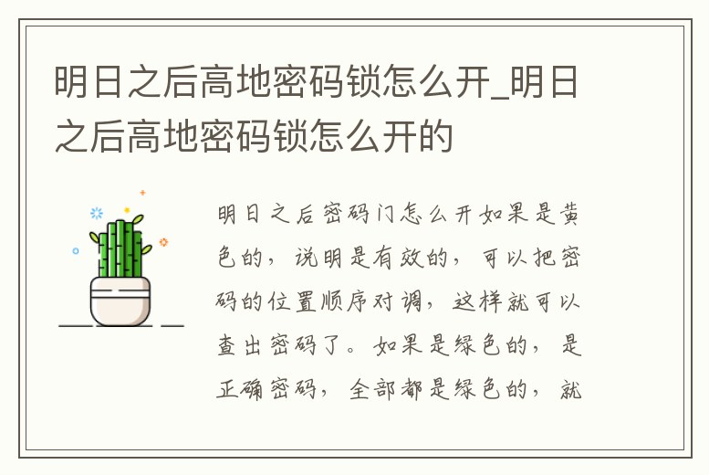明日之后高地密碼鎖怎么開_明日之后高地密碼鎖怎么開的
