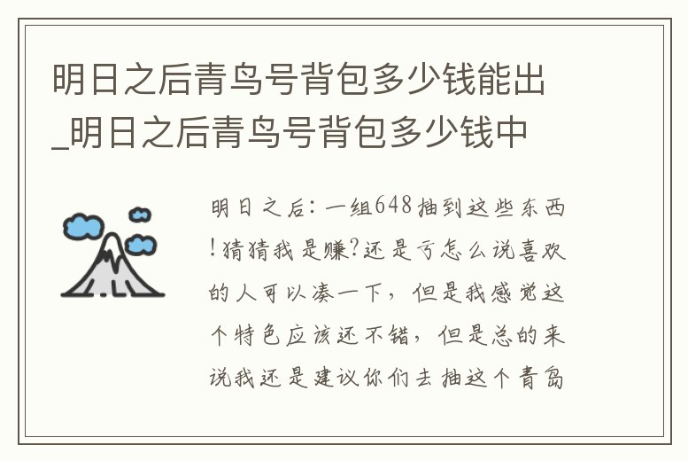 明日之后青鳥號背包多少錢能出_明日之后青鳥號背包多少錢中