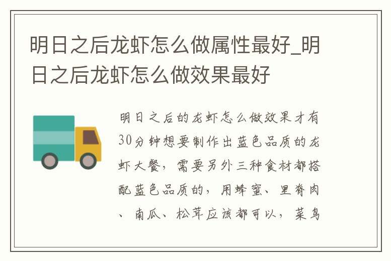 明日之后龍蝦怎么做屬性最好_明日之后龍蝦怎么做效果最好