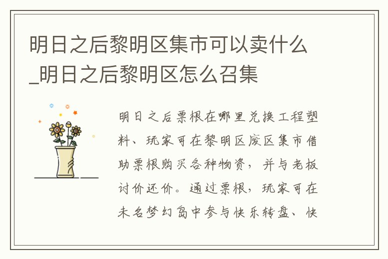 明日之后黎明區集市可以賣什么_明日之后黎明區怎么召集