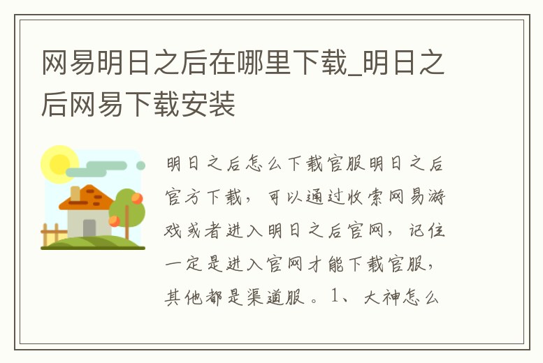明日之后官方下載,可以通過收索網易游戲或者進入明日之后官網,記住一定是進入官網才能下載官服,其他都是渠道服 。