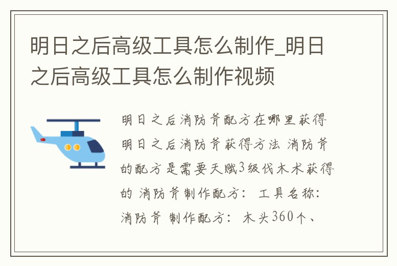 明日之后高級工具怎么制作_明日之后高級工具怎么制作視頻