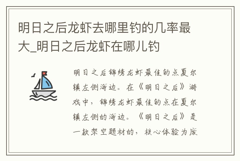 夏爾鎮左側海邊。在《明日之后》游戲中,錦繡龍蝦最佳釣點在夏爾鎮左側的海邊。《明日之后》是一款架空題材的,核心體驗為廢土生存合作的3D多人在線手游。