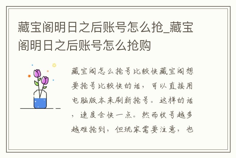 藏寶閣明日之后賬號怎么搶_藏寶閣明日之后賬號怎么搶購