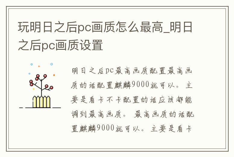 玩明日之后pc畫質怎么最高_明日之后pc畫質設置