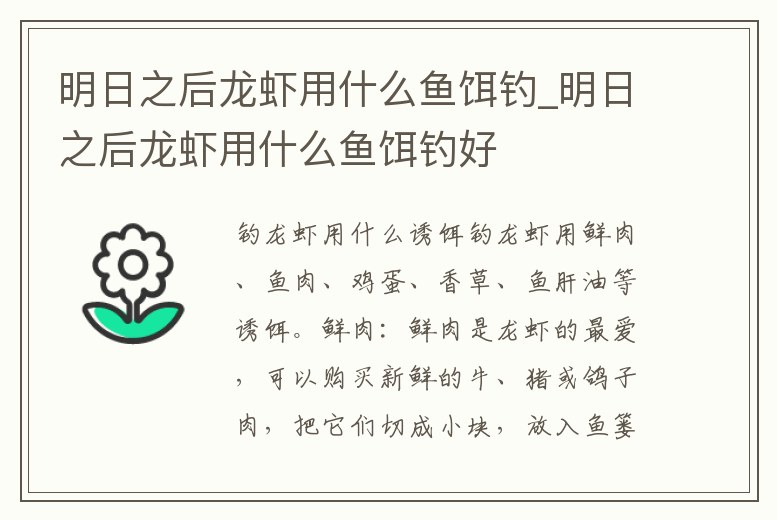 明日之后龍蝦用什么魚餌釣_明日之后龍蝦用什么魚餌釣好