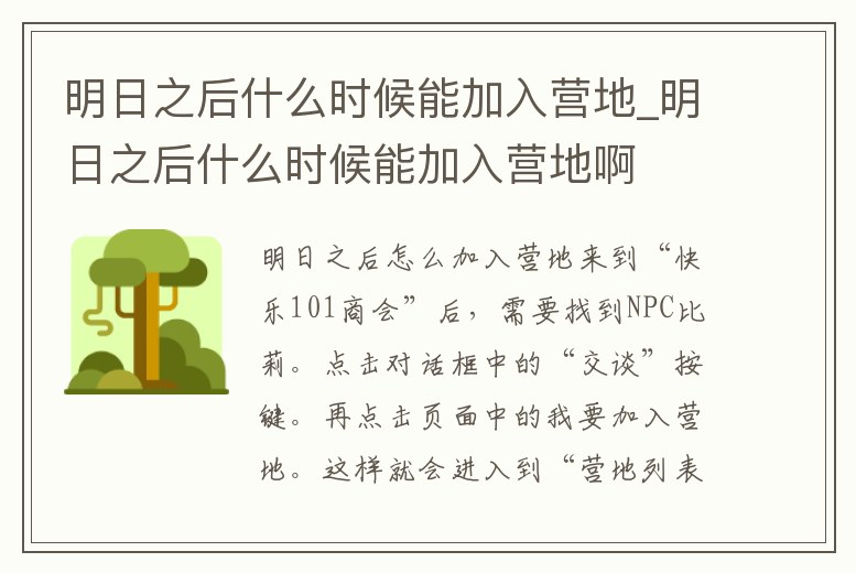 明日之后什么時候能加入營地_明日之后什么時候能加入營地啊