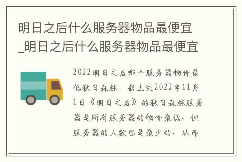 秋日森林。截止到2022年11月1日《明日之后》的秋日森林服務(wù)器是所有服務(wù)器的物價最低,但服務(wù)器的人數(shù)也是最少的,從而導(dǎo)致價格。