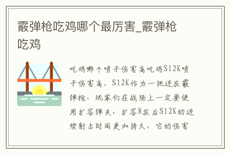 吃雞S12K噴子傷害高。S12K作為一把連發(fā)霰彈槍,玩家們在戰(zhàn)場上一定要使用擴容彈夾,擴容8發(fā)后S12K的連續(xù)射擊時間更加持久,它的傷害瞬間增強了許多,致命傷害更強!《和平精英》簡介 吃雞,真正的游戲名字為,絕地求生刺激戰(zhàn)場。