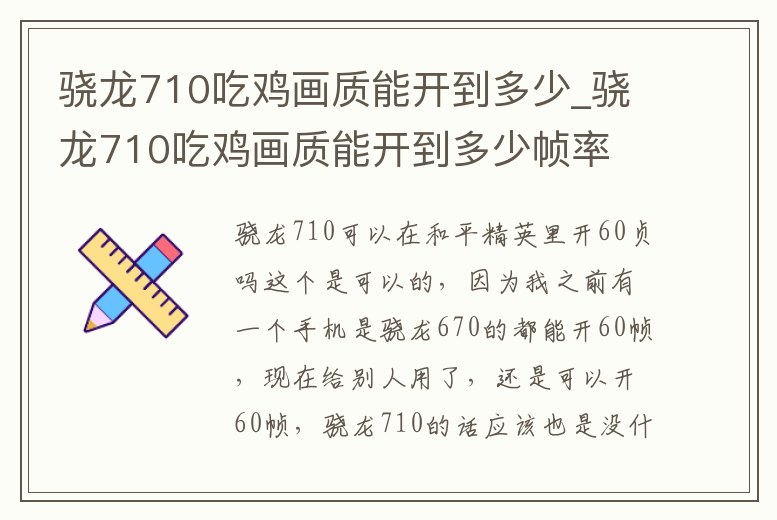 - 驍龍710吃雞畫質(zhì)能開到多少_驍龍710吃雞畫質(zhì)能開到多少幀率