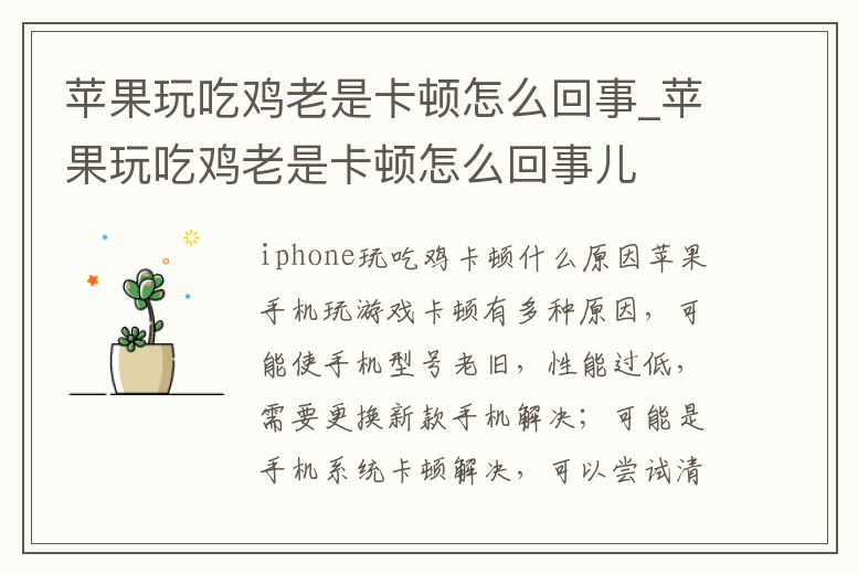 蘋果玩吃雞老是卡頓怎么回事_蘋果玩吃雞老是卡頓怎么回事兒