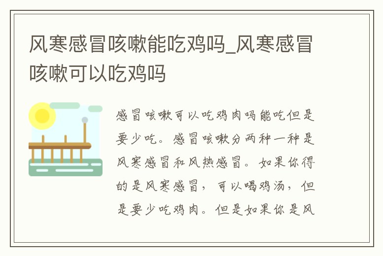 能吃但是要少吃。感冒咳嗽分兩種一種是風寒感冒和風熱感冒。如果你得的是風寒感冒,可以喝雞湯,但是要少吃雞肉。但是如果你是風熱感冒,雞湯只會讓你的咳嗽、咽喉疼痛癥狀更嚴重。