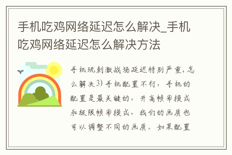 手機吃雞網絡延遲怎么解決_手機吃雞網絡延遲怎么解決方法
