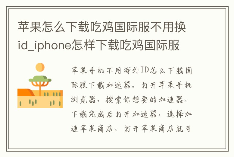蘋果怎么下載吃雞國際服不用換id_iphone怎樣下載吃雞國際服
