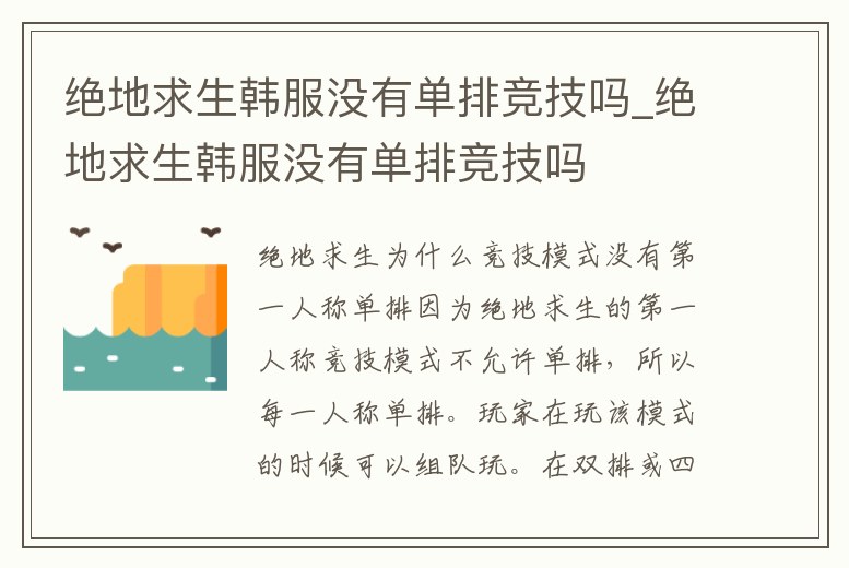 - 絕地求生韓服沒有單排競技嗎_絕地求生韓服沒有單排競技嗎