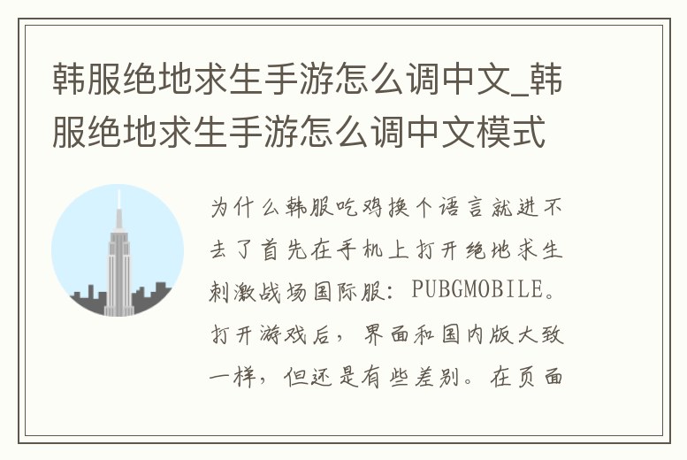 韓服絕地求生手游怎么調中文_韓服絕地求生手游怎么調中文模式