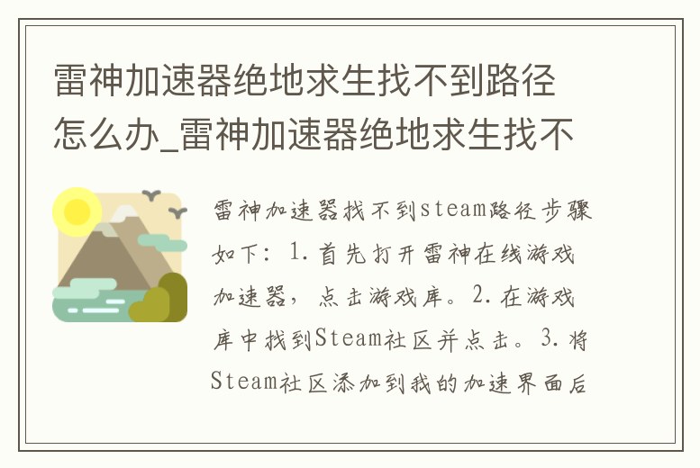 雷神加速器絕地求生找不到路徑怎么辦_雷神加速器絕地求生找不到路徑怎么辦呀