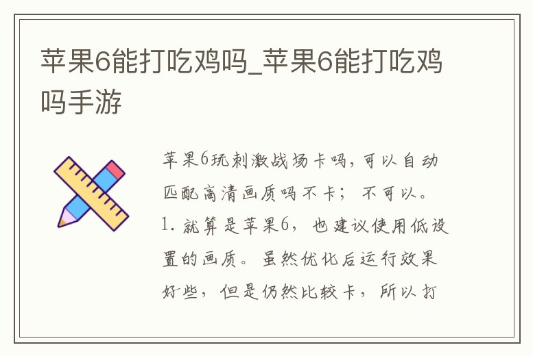 蘋果6玩刺激戰場卡嗎,可以自動匹配高清畫質嗎