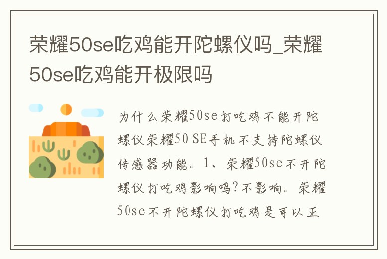 榮耀50se吃雞能開陀螺儀嗎_榮耀50se吃雞能開極限嗎