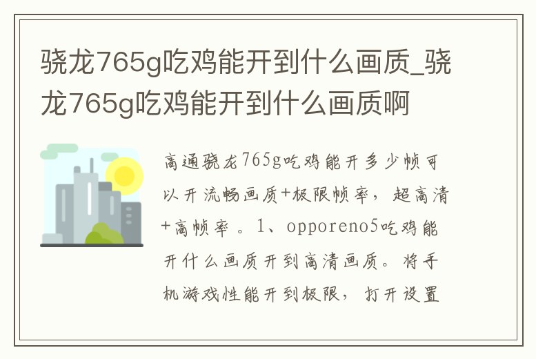 驍龍765g吃雞能開到什么畫質(zhì)_驍龍765g吃雞能開到什么畫質(zhì)啊