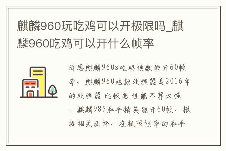 麒麟960玩吃雞可以開極限嗎_麒麟960吃雞可以開什么幀率