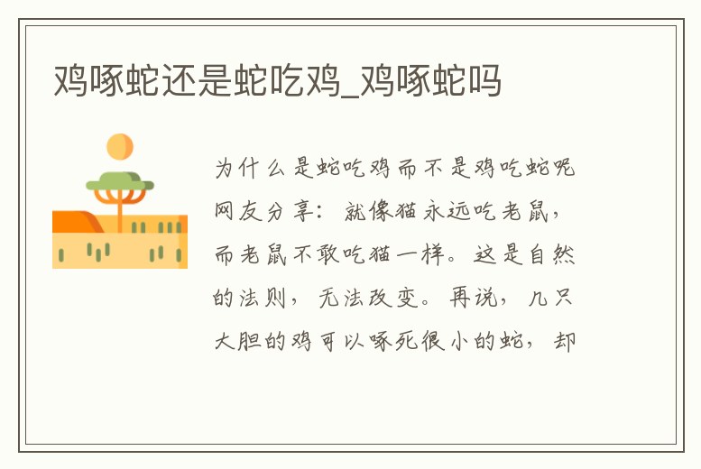 雞啄蛇還是蛇吃雞_雞啄蛇嗎