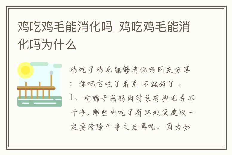 雞吃雞毛能消化嗎_雞吃雞毛能消化嗎為什么