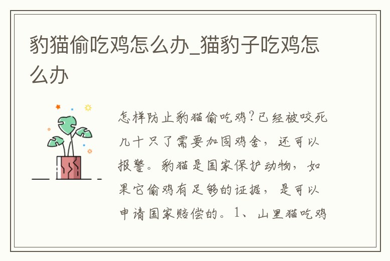 豹貓偷吃雞怎么辦_貓豹子吃雞怎么辦