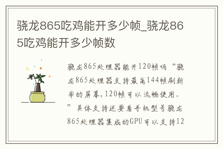 驍龍865吃雞能開多少幀_驍龍865吃雞能開多少幀數