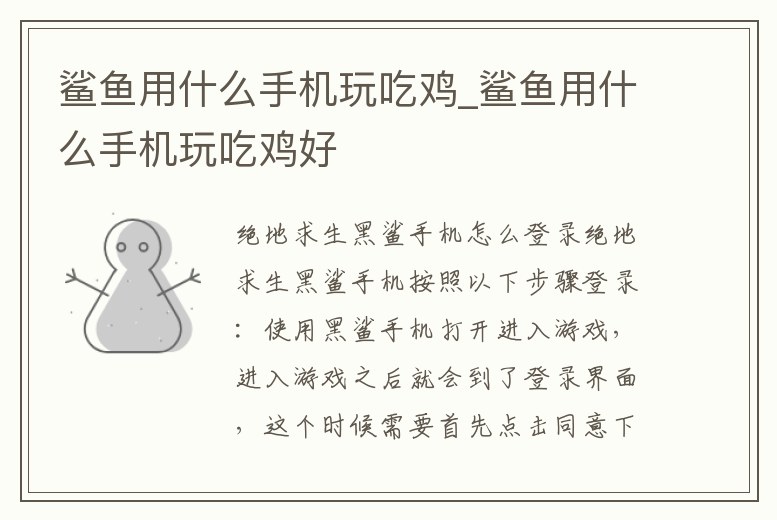 鯊魚用什么手機玩吃雞_鯊魚用什么手機玩吃雞好