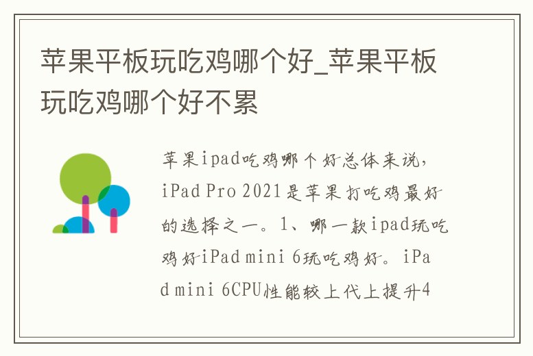 蘋果平板玩吃雞哪個好_蘋果平板玩吃雞哪個好不累