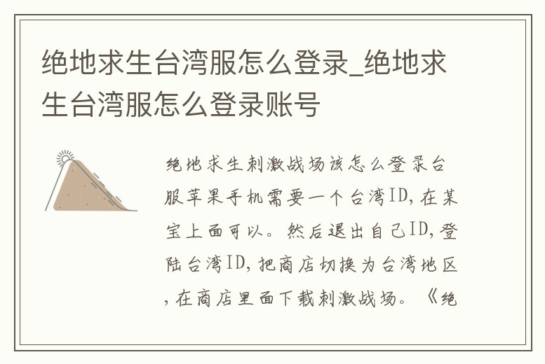 - 絕地求生臺(tái)灣服怎么登錄_絕地求生臺(tái)灣服怎么登錄賬號(hào)