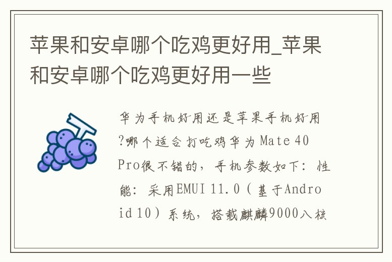 蘋果和安卓哪個吃雞更好用_蘋果和安卓哪個吃雞更好用一些