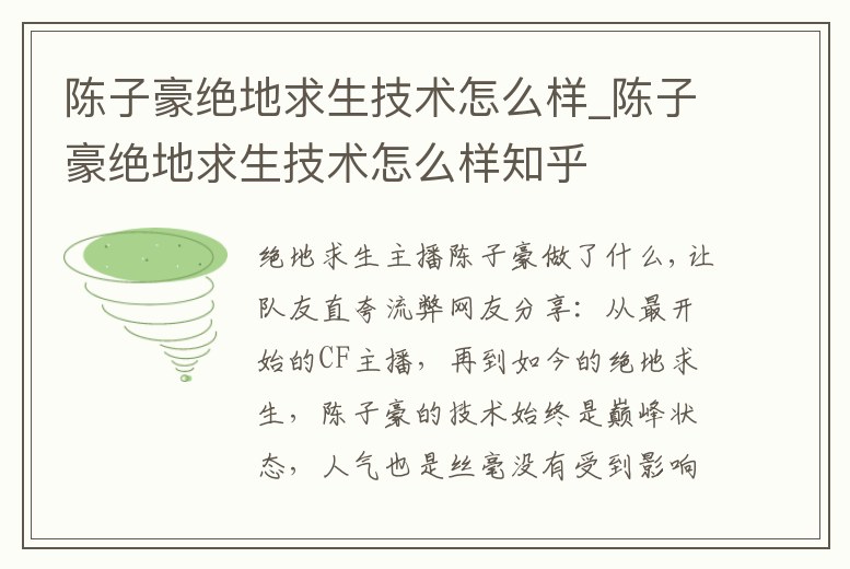 - 陳子豪絕地求生技術(shù)怎么樣_陳子豪絕地求生技術(shù)怎么樣知乎
