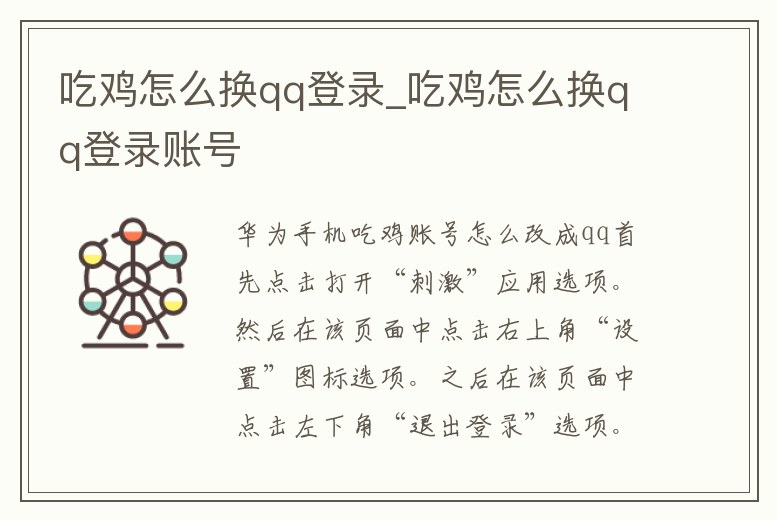 吃雞怎么換qq登錄_吃雞怎么換qq登錄賬號