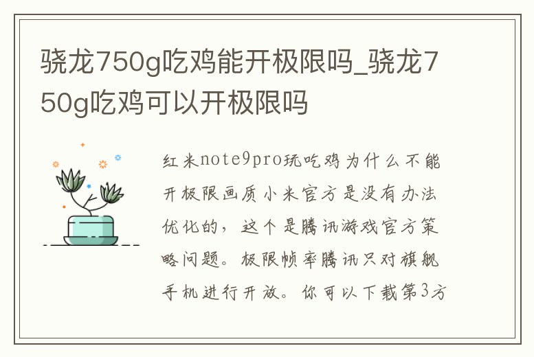 驍龍750g吃雞能開極限嗎_驍龍750g吃雞可以開極限嗎