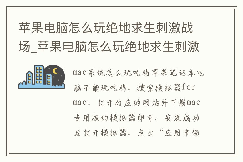 - 蘋果電腦怎么玩絕地求生刺激戰(zhàn)場(chǎng)_蘋果電腦怎么玩絕地求生刺激戰(zhàn)場(chǎng)手游