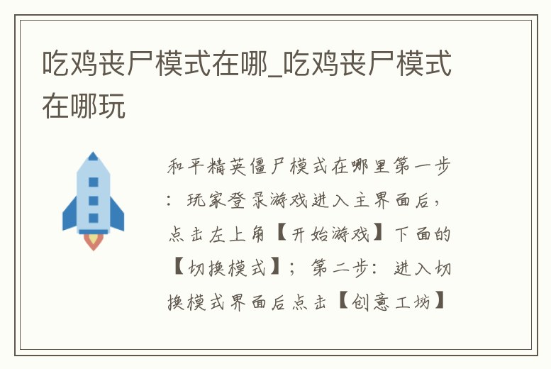 吃雞喪尸模式在哪_吃雞喪尸模式在哪玩