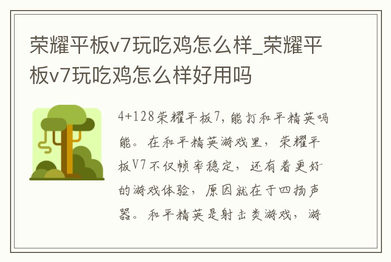 榮耀平板v7玩吃雞怎么樣_榮耀平板v7玩吃雞怎么樣好用嗎